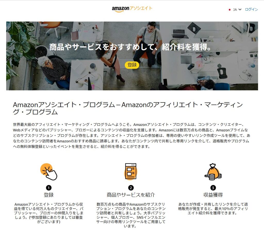 上記のアマゾンアソシエイトページからプログラムに申し込みます。