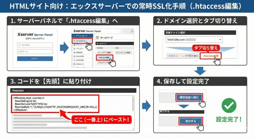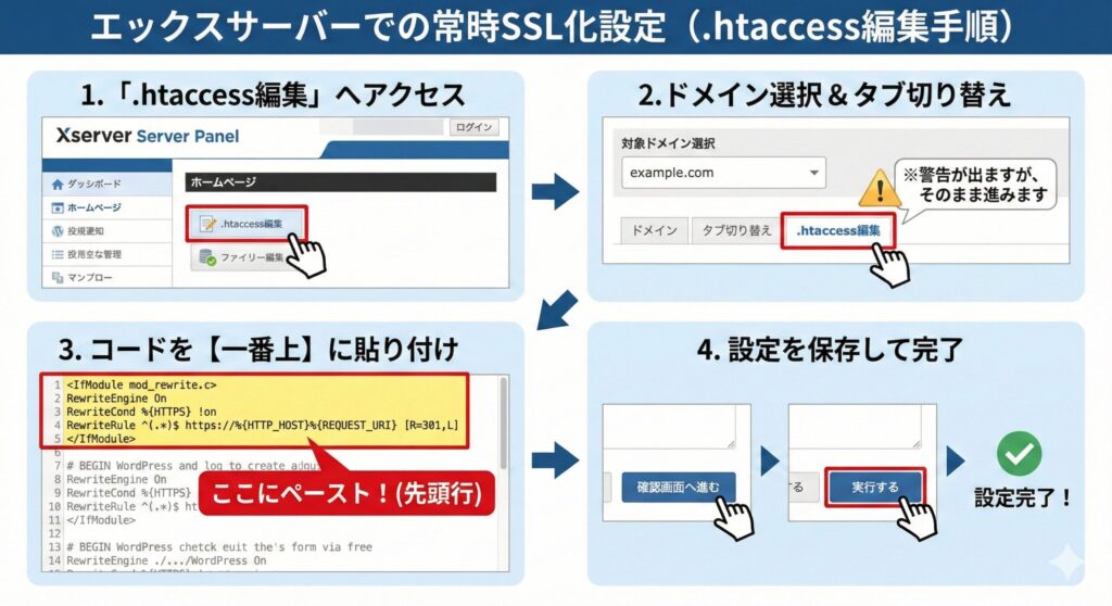 この2つを順番に行わないと、サイトが正しく表示されなかったり、保護されていない状態のままになったりします。手順を分かりやすく解説します。