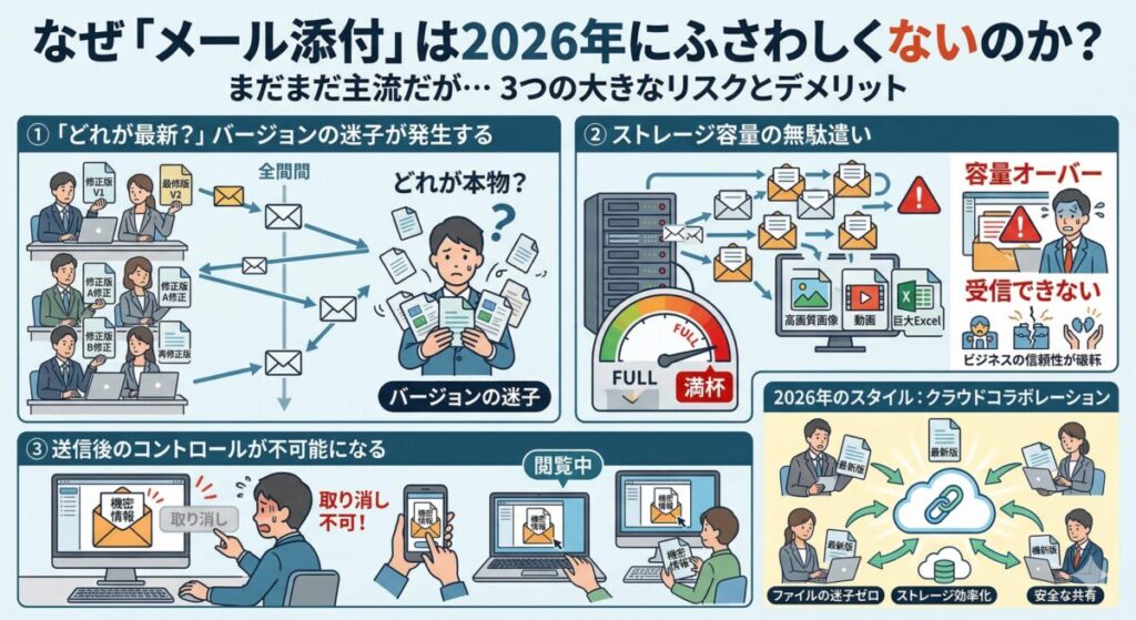 1. なぜ「メール添付」は2026年にふさわしくないのか?