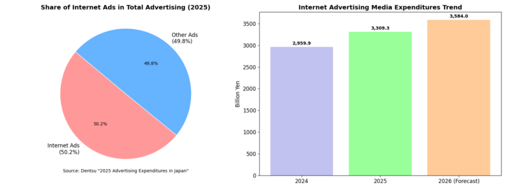 参照元: 電通ニュースリリース(2026年3月5日発表)「2025年 日本の広告費 インターネット広告媒体費 詳細分析」